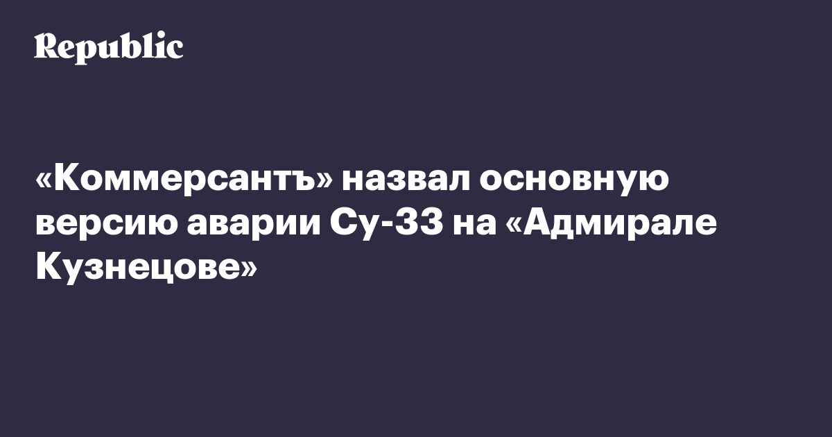 Комиссия Министерства обороны, занимающаяся расследованием падения истребителя Су-33 с палубы крейсера «Адмирал Кузнецов», установила, что причиной аварии стала ошибка пилота. Об этом «Коммерсанту» рассказали близкий к Главному штабу ВМФ источники, а также топ-менеджер предприятия авиационной промышленности.