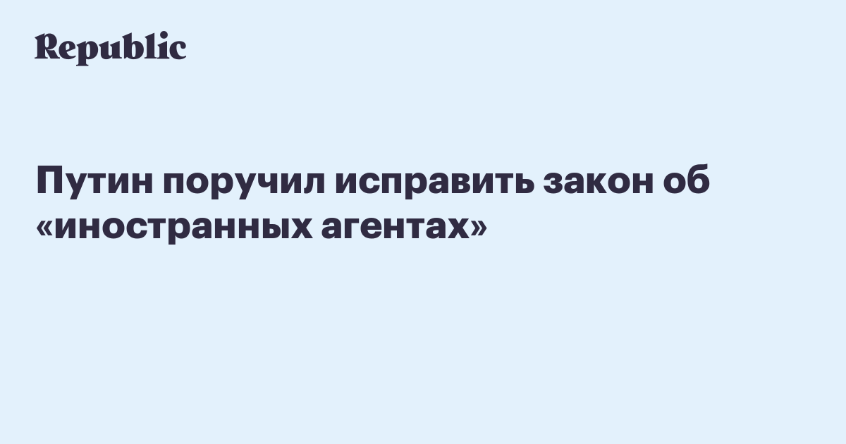 «По поводу НКО – иностранных агентов, работающих в экологической сфере, Сергей Владиленович [Кириенко] уже имеет такое поручение с моей стороны – в целом еще раз посмотреть на этот закон», – пояснил Путин.