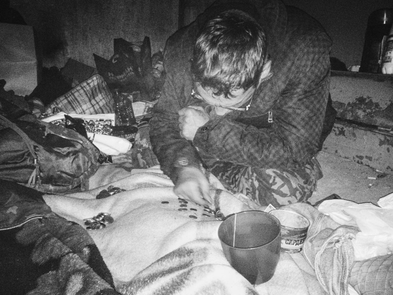 Там хер знает кто в палатках этих ночует. Алкаши, клопастые, зэки«Бушлат на нем не просто так, — говорит Кирилл, пока мы идем в пункт сдачи металлолома. — Раньше многие бродяги так одевались, когда чеченские войны шли. И им много денег давали. Потом это все прошло. А сейчас опять — Украина, Сирия. Бушлат Сане поможет, сто пудов. Психология, епт».
