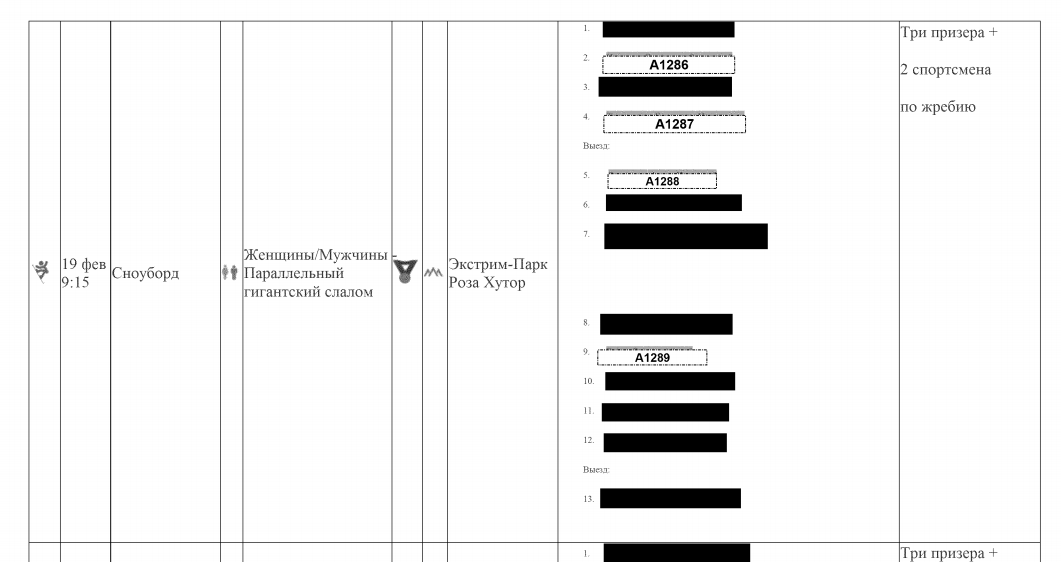 Как видно из приведенных выше скриншотов, в списке от 15 февраля, когда Виктор Ан завоевал первое золото в шорт-треке на 1000 метров, нет ни одного заподозренного в допинге спортсмена. Такая же ситуация с фигуристами — все имена закрашены, ни одному не присвоен порядковый код. Но сноубордистов в перечне спортсменов, вызвавших подозрение, сразу четверо.