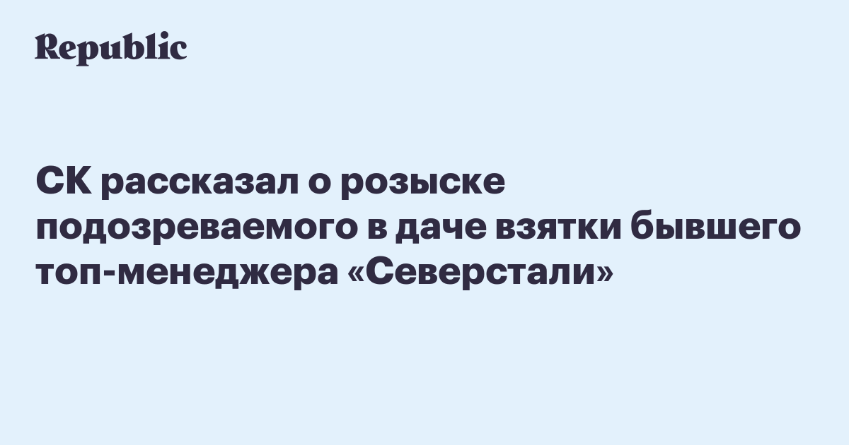 СК рассказал о розыске подозреваемого в даче взятки бывшего топ-менеджера «Северстали»