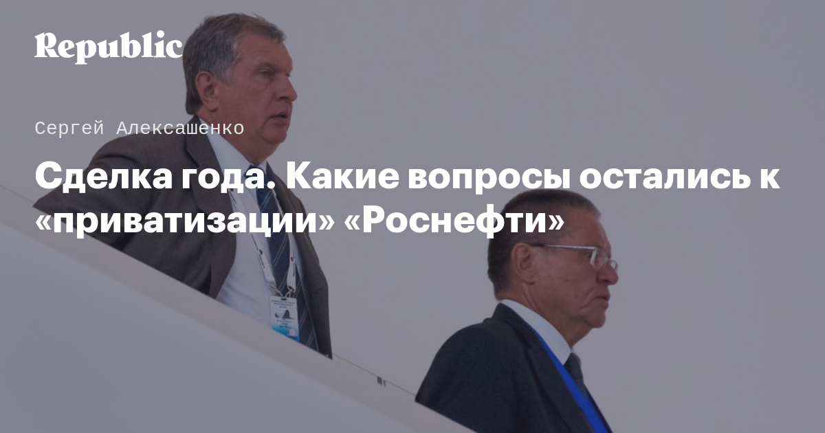 Сделка года. Какие вопросы остались к «приватизации» «Роснефти»