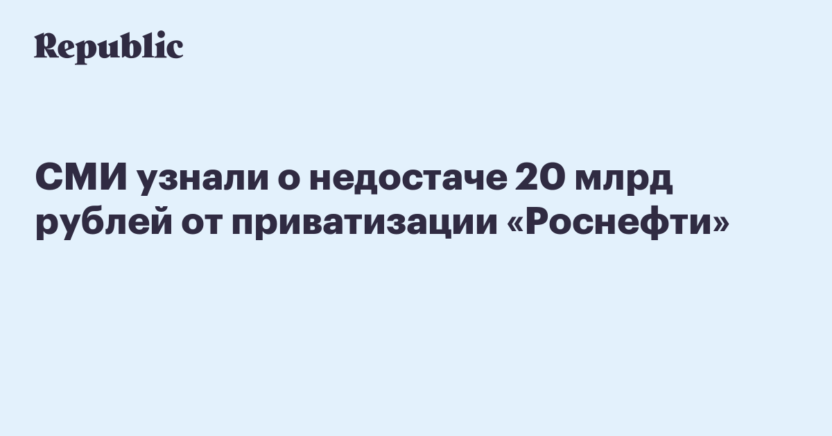 СМИ узнали о недостаче 20 млрд рублей от приватизации «Роснефти»