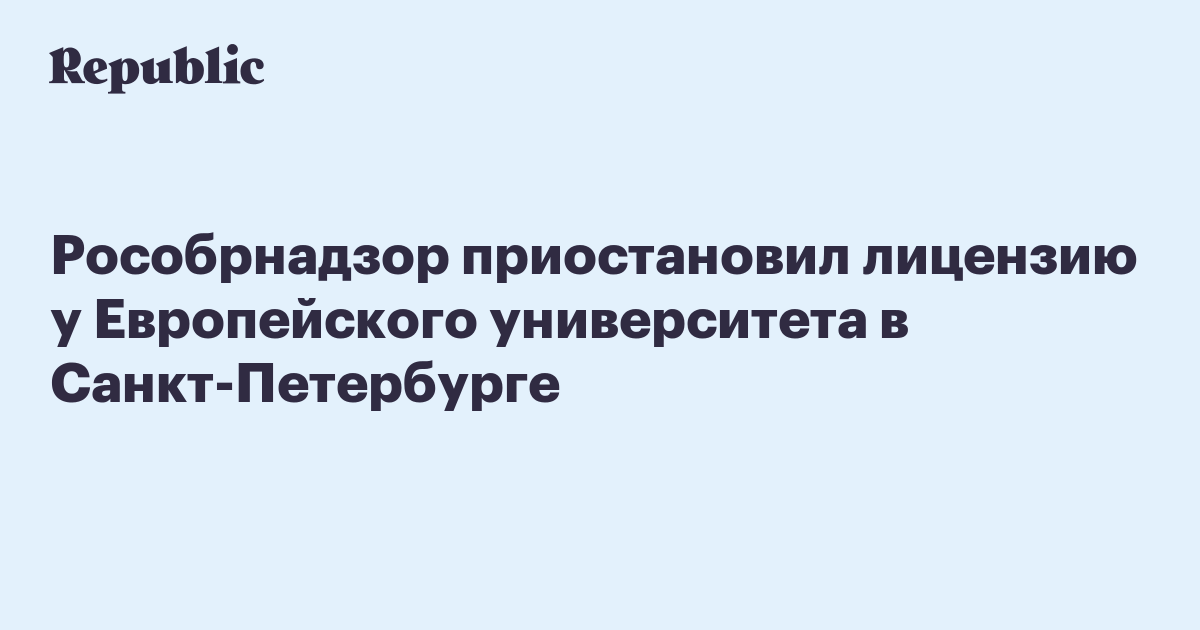 Федеральная служба по надзору в сфере образования и науки (Рособрнадзор) приостановила лицензию Европейского университета (ЕУ) в Санкт-Петербурге. Об этом сообщает газета «Ведомости» со ссылкой на реестр лицензий.
