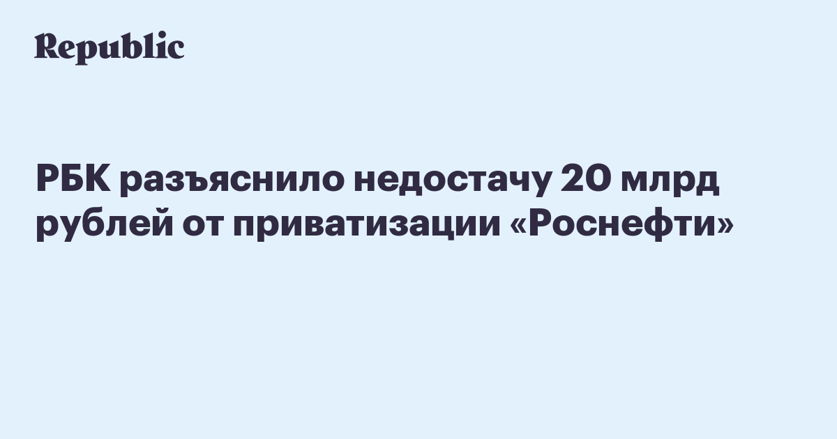 РБК разъяснило недостачу 20 млрд рублей от приватизации «Роснефти»