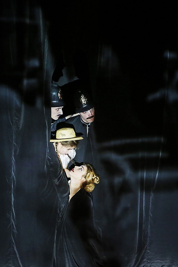 Первым показали спектакль «Немое кино». Ремарки для него рассыпаны в стихотворении Осипа Мандельштама («И в исступленьи, как гитана, // Она заламывает руки. // Разлука. Бешеные звуки // Затравленного фортепьяно...»). Артисты в нужный момент действительно заламывают руки. В том числе как гитаны - испанские цыганки во время танца. И фортепиано действительно звучит как затравленное – с живым тапёром. Само название спектакля вылетело из этого же мандельштамовского стихотворения: «Кинематограф. Три скамейки. // Сантиментальная горячка…»). Мало того что сАнтиментальная, так ещё и горячка. Чувства обязательно должны бить через край. Сильные чувства в немом кино передаются через сильные жесты. Много жестокости – над которой зрители должны либо плакать, либо смеяться. Происходящее должно горячить кровь. Здесь не до особых тонкостей. Это стилизация. Это вообще особенность современного искусства. Режиссёры, музыканты… Все они постоянно обращаются к прошлому. Подражают героям (в данном случае – героям начала прошлого века). Перепевают старые песни…