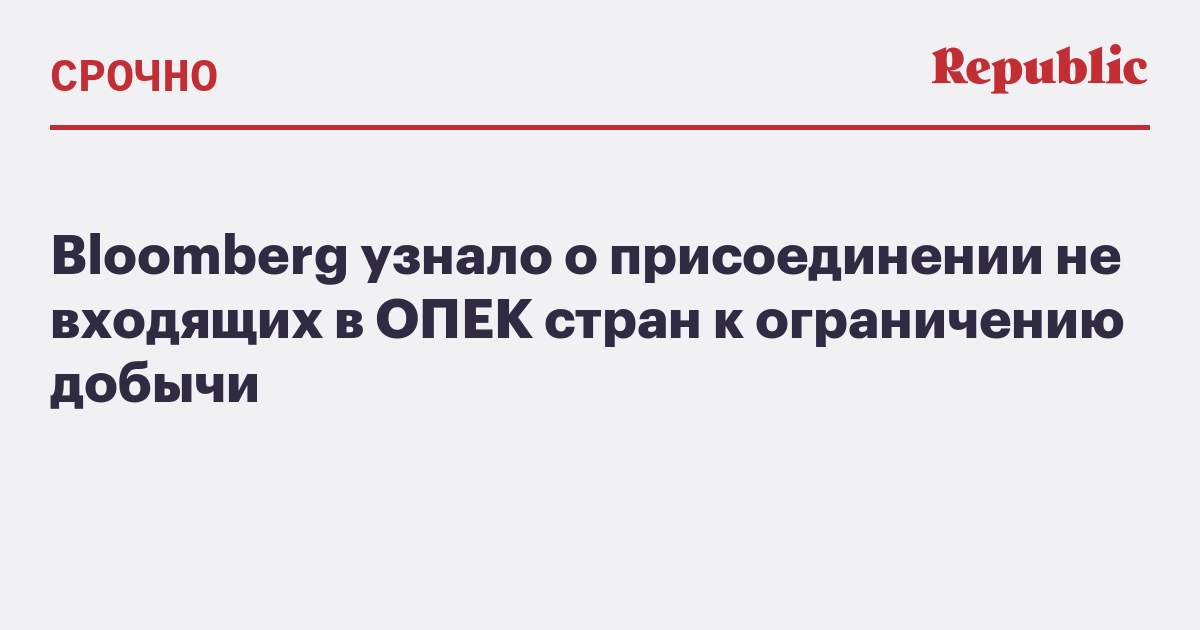 Bloomberg узнало о присоединении не входящих в ОПЕК стран к ограничению добычи