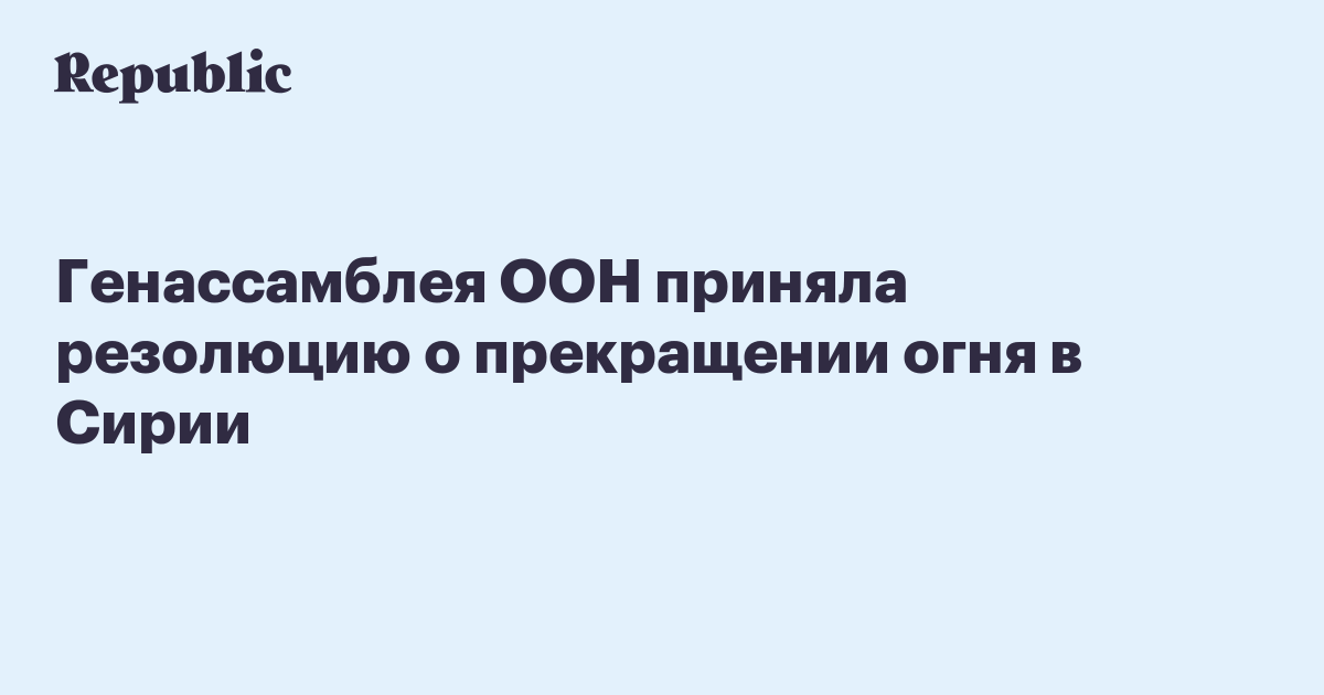 Генассамблея ООН приняла резолюцию о прекращении огня в Сирии