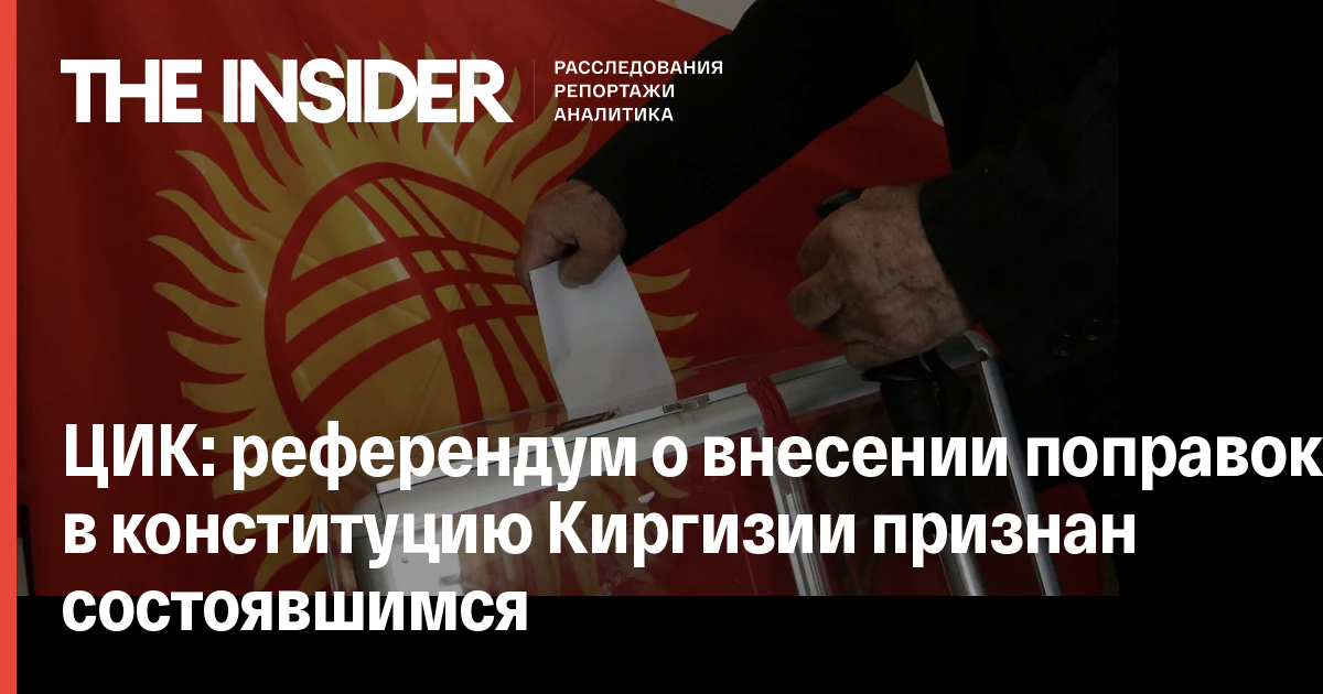 Центральная избирательная комиссия Киргизии признала состоявшимся референдум по изменению конституции страны. По данным ЦИК, участки для голосования посетили около 30% избирателей. Такой уровень явки на референдуме позволяет считать его состоявшимся.
