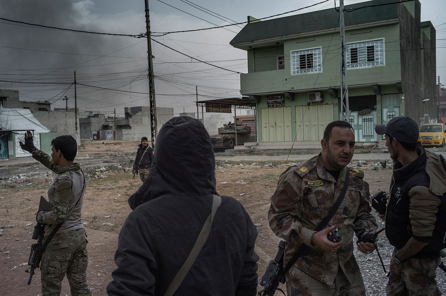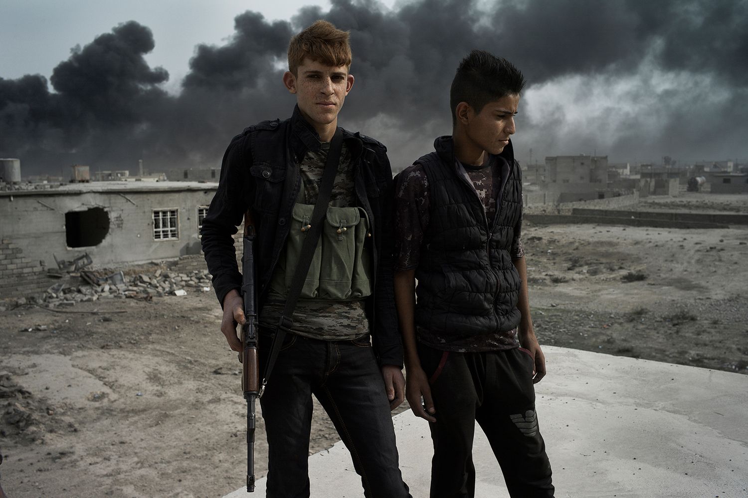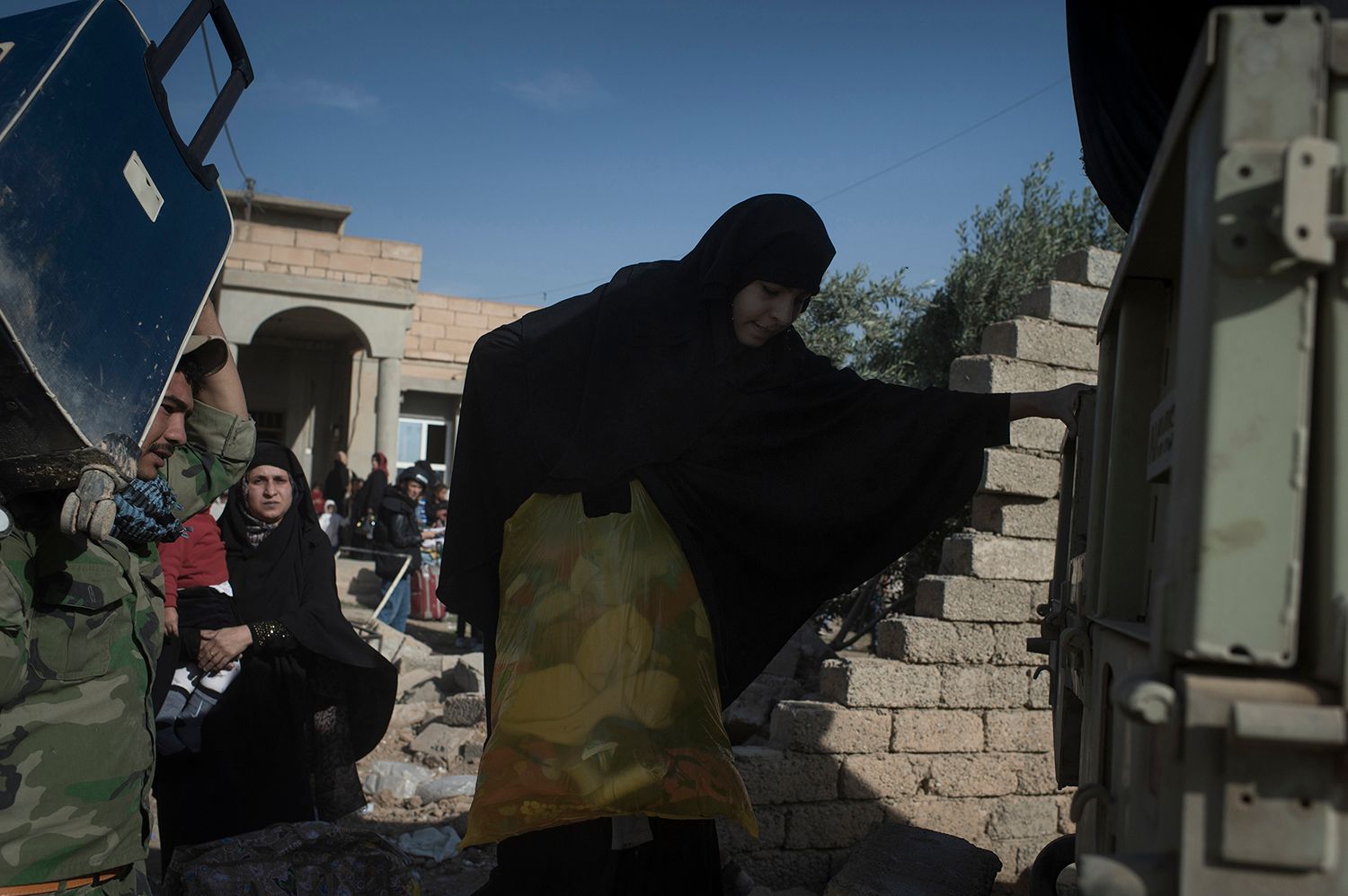 Фото: Мария Турченкова Балкон жилого дома в городе Гайара (60 километров от Мосула). Гайара была отбита у ИГ в августе 2016 года. Отступая, боевики подожгли нефтяные колодцы в городе и окрестностяхФото: Мария Турченкова Район Саддам на востоке Мосула. Около 74000 жителей покинули город после начала операции по освобождениюФото: Мария Турченкова Солдаты «Золотой дивизии» (спецподразделение иракской армии) после уничтожения заминированного автомобиля, оставленного отступающими из района Саддам боевикамиФото: Мария Турченкова Женщины у входа в суд в ГайареФото: Мария Турченкова Жители Шоры (город в 30 километрах от Мосула), добравшиеся в Гайару пешком, ждут проверки иракскими спеслужбами на причастность к ИГ перед отправкой в лагерь беженцевФото: Мария Турченкова Жители окрестностей Мосула, два года жившие на территории, подконтрольной ИГ. Сулейман рассказывает, что самостоятельно вывез на безопасную территорию свою семью из 24 человек, сейчас они живут в лагере для беженцев «Хазар»Фото: Мария Турченкова Мирные жители, покинувшие районы Мосула, контролируемые ИГ, и добравшиеся до иракских военных, переправляются в лагерь для беженцевФото: Мария Турченкова Двенадцатилетний Мурад, раненный несколько дней назад во время минометного обстрела Мосула, и его двоюродная сестра Зайнаб вынуждены были с семьей покинуть свой домФото: Мария Турченкова Члены суннитского племенного ополчения в ГайареФото: Мария Турченкова Сотрудники федеральной полиции Ирака на территории сельскохозяйственного колледжа в Хаммам аль-Али в окрестностях Мосула. На территории колледжа были обнаружены более 200 тел жертв, казненных боевиками ИГ перед отступлениемФото: Мария Турченкова Дом в Гайаре, взорванный иракскими военными. Считается, что здесь жили пособники ИГ. Надписи на стенах: «ИГИЛ — убийца невинных», «Кровь за кровь»Фото: Мария Турченкова Подозреваемые в пособничестве ИГ возле здания суда в Гайаре. Пять из семи мужчин были оправданы решением суда; двое были признаны виновными, им грозит смертная казньФото: Мария Турченкова Дети играют с электрическими проводами в городе ГайареФото: Мария Турченкова Иракские военные на окраине поселка Хаммам аль-АлиФото: Мария Турченкова Токсичный дым от подожженных нефтяных колодцев заполняет Гайару и окрестности и покрывает все слоем черной пыли