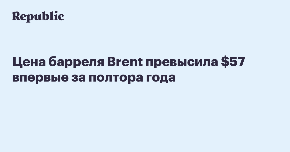 Цена на нефть марки Brent достигла $57,07 за баррель. Это произошло впервые с конца июля 2015 года. Котировки WTI поднялись до $53,97 за баррель.