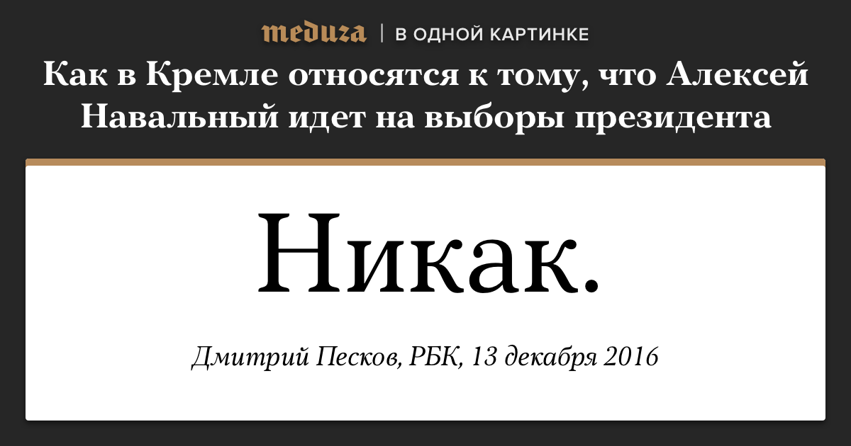 Как в Кремле относятся к тому, что Алексей Навальный идет на выборы президента. Одно слово
