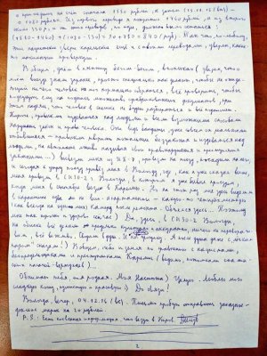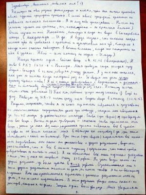 ОВД-Инфо публикует отрывок из письма, которое получила от Ильдара Дадина его жена Анастасия Зотова. Из текста следует, что писал он его 4 декабря, находясь в СИЗО-2 Вологодской области, куда его перевезли из ИК-7 Карелии. Где он находится в данный момент, по-прежнему неизвестно. Любопытное совпадение: 12 декабря заместитель главы ФСИН Валерий Максименко заявил, что Дадин в ближайшее время проинформирует родственников о новом месте своего пребывания, а также что он «чувствует он себя хорошо, пребывает в бодром расположении духа, имеет завидный аппетит и усиленно питается».