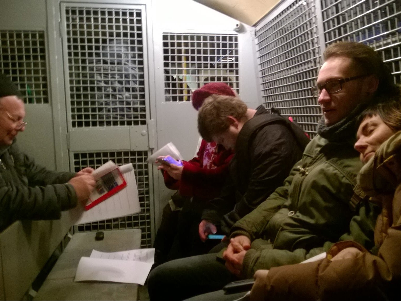 По данным издания, сначала были задержаны 13 человек, потом на подходе к Горбатому мосту задержали еще двоих. Сами задержанные сообщают в соцсетях, что у них забрали паспорта под предлогом установления личности и оформления объяснительных.
