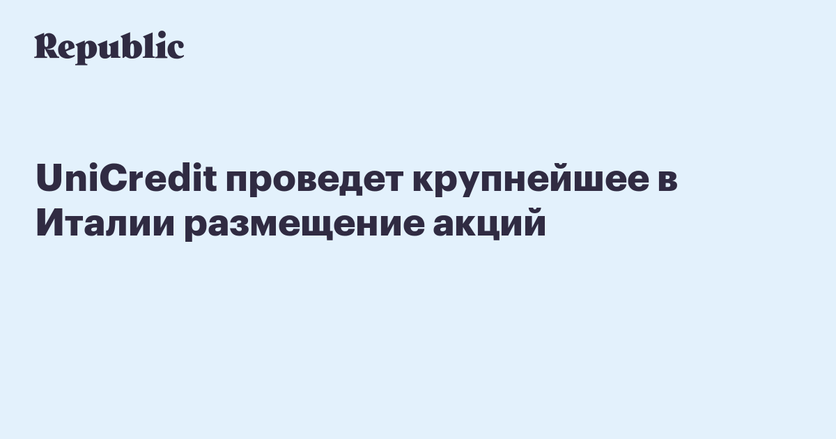 Крупнейший итальянский банк UniCredit объявил о размещении акций на сумму до €13 млрд (около $13,8 млрд). Об этом говорится в пресс-релизе финансовой организации.