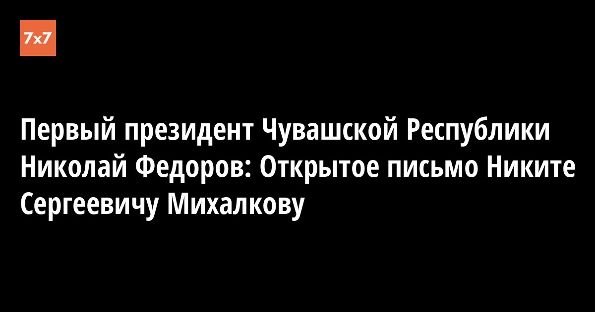 Первый президент Чувашской Республики Николай Федоров: Открытое письмо Никите Сергеевичу Михалкову