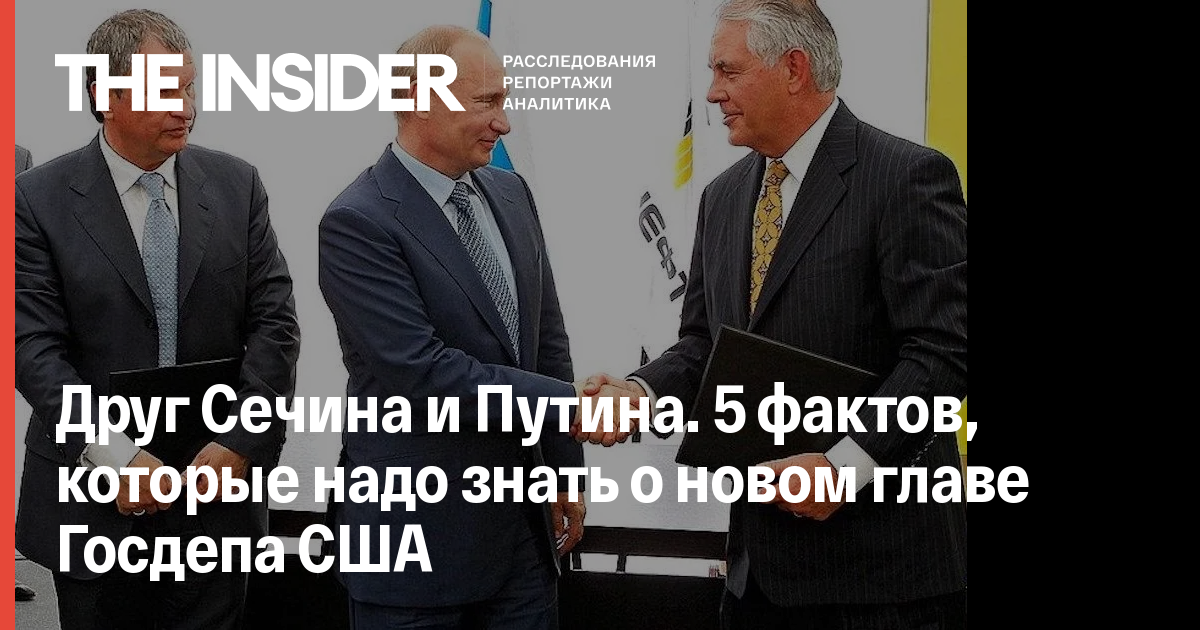 Сегодня избранный президент США Дональд Трамп заявил о своем решении назначить главой Госдепартамента руководителя нефтяной компании ExxonMobil Рекса Тиллерсона. В интервью FoxNews Трамп, перечисляя основные достоинства Тиллерсона, особо отметил его опыт проведения сделок с Россией и его связи с российским президентом Владимиром Путиным. The Insider представляет свидетельства того, что Тиллерсона с Путиным действительно связывают очень близкие отношения, во многом определившие карьерный рост нынешнего главы Госдепа США.