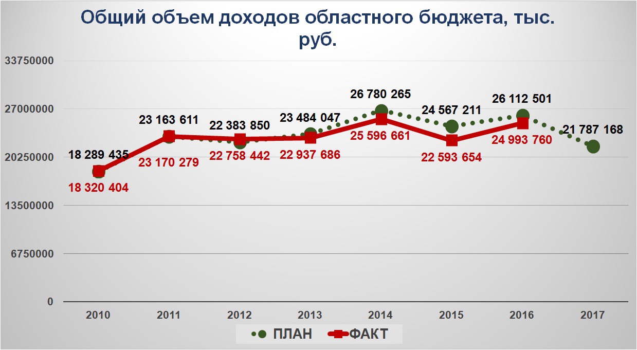 В целом собственные доходы областного бюджета (без учёта федеральных безвозмездных поступлений) по факту 2016 года составят примерно 14 млрд 807,5 млн, на 2017 год запланировано 15 млрд 899,5 млн, и эта цифра выглядит излишне оптимистичной, так как доходы по целому ряду статей в расчётах проекта бюджета явно завышены.