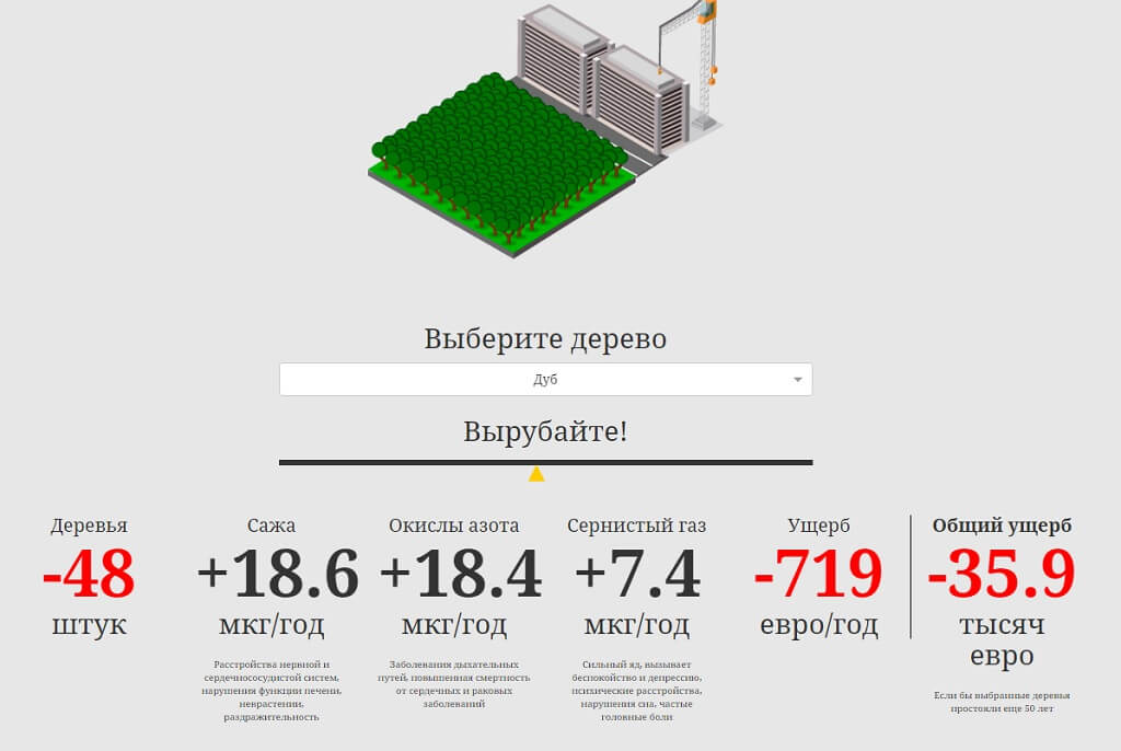 «Жителям окружающих домов это не нравится, потому что они там гуляют, там красиво и т.д. Но активистам очень сложно оценить реальный ущерб от вырубки, сложно предъявить конкретные цифры для аргументации перед обществом и властями. Поэтому мы решили изучить подобные методологии и промоделировать их», – рассказывает работавший над программированием сервиса Сергей Устинов.