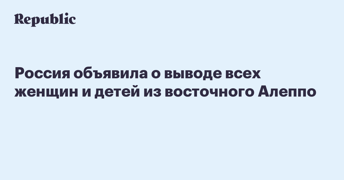Россия объявила о выводе всех женщин и детей из восточного Алеппо