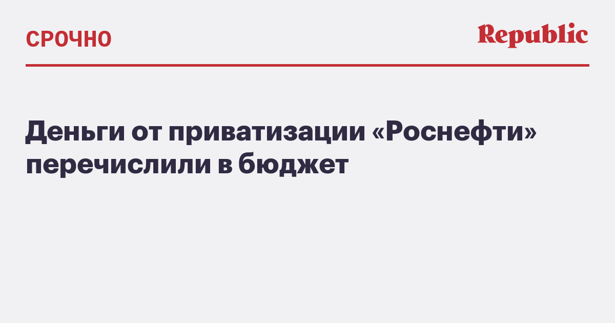 Ранее 16 декабря в «Роснефтегазе» отчитались, что получили средства от приватизации ценных бумаг «Роснефти». В государственном холдинге указали, что в результате в бюджет будет перечислено 710,8 млрд рублей, а с учетом приватизации госпакета акций «Башнефти» (который купила «Роснефть») – около 1,04 трлн рублей.