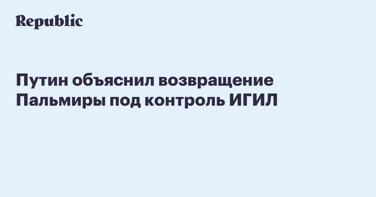 Пальмира вновь перешла под контроль «Исламского государства» из-за несогласованных действий коалиции, Сирии и России. Об этом заявил президент России Владимир Путин, передает «Интерфакс».