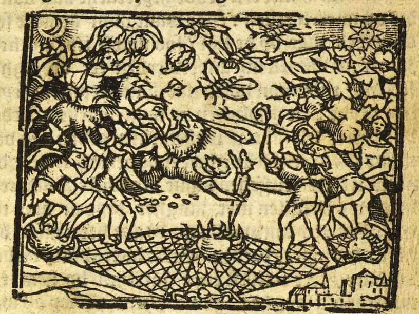 Битва армий Луны и Солнца. Иллюстрация из голландского издания 1647 года