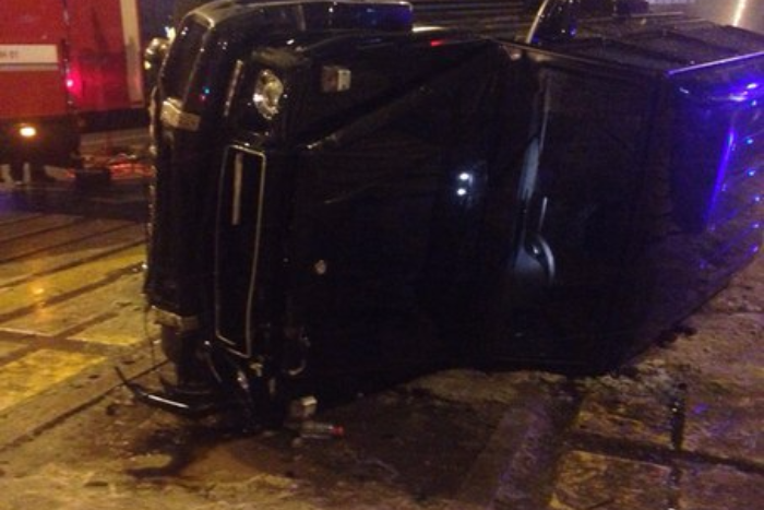 «Гелендваген» в результате столкновения перевернулся на бок. По информации очевидцев, водитель и пассажир скрутили с автомобиля номера и положили их в салон. По данным «Фонтанки», «Гелендваген» был куплен менее чем за двое суток до столкновения.
