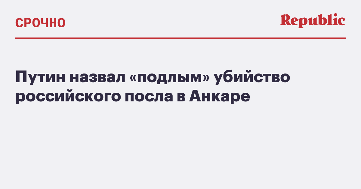 Путин назвал «подлым» убийство российского посла в Анкаре