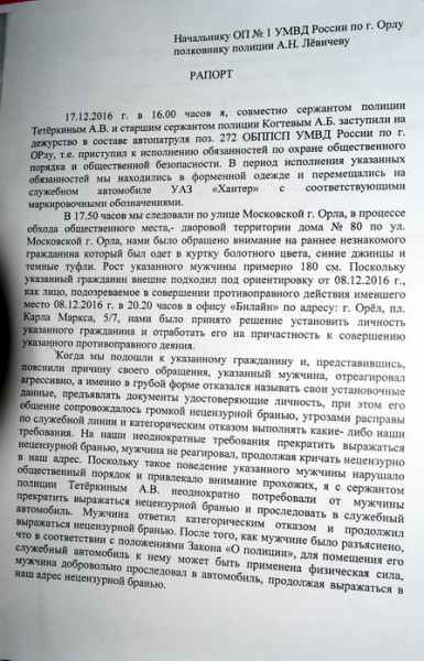 Очевидно, что эти провокации были санкционированы высшим руководством области и УМВД. Вот я не пойму, зачем главному орловскому полицейскому генералу Савенкову вот так было подставляться с этими провокациями?