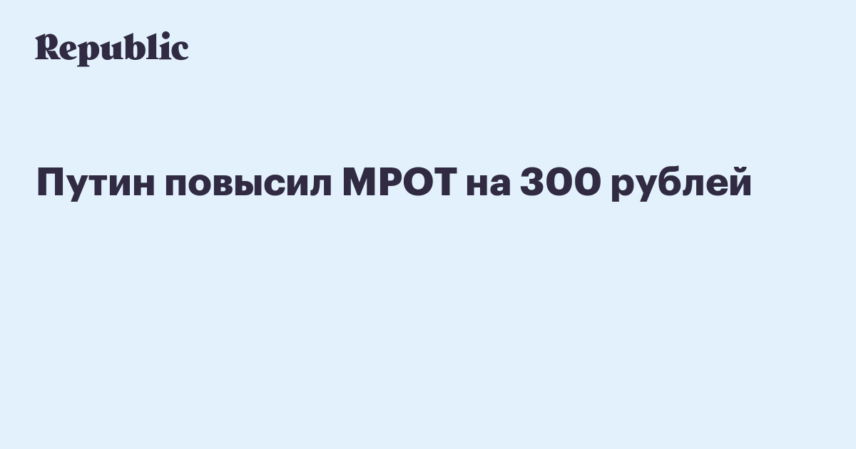 Минимальный размер оплаты труда (МРОТ) в России с 1 июля 2017 года составит 7,8 тысячи рублей. Соответствующий закон был подписан президентом РФ Владимиром Путиным и 20 декабря опубликован на официальном портале правовой информации.