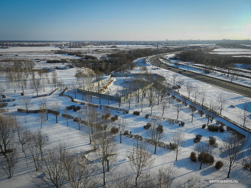 Чтобы представить масштаб разорения парка, поднимаемся на девятый этаж близлежащего дома по улице Бирюзова. Из окна хорошо видно, что забор действительно «расползся» по гораздо большей площади, чем было обещано, что солидная часть деревьев и кустарников вырублена, аллеи перегорожены, строительство собираются вести на самом краю природного оврага. Несмотря на все эти неудобства, люди продолжают ходить через парк на работу, гулять с детьми. Несколько женщин выходят в парк по нескольку раз на дню, чтобы покормить и обогреть собаку-маму и ее щенков, для которых обустроили нору, накидав в нее соломы и тряпок.