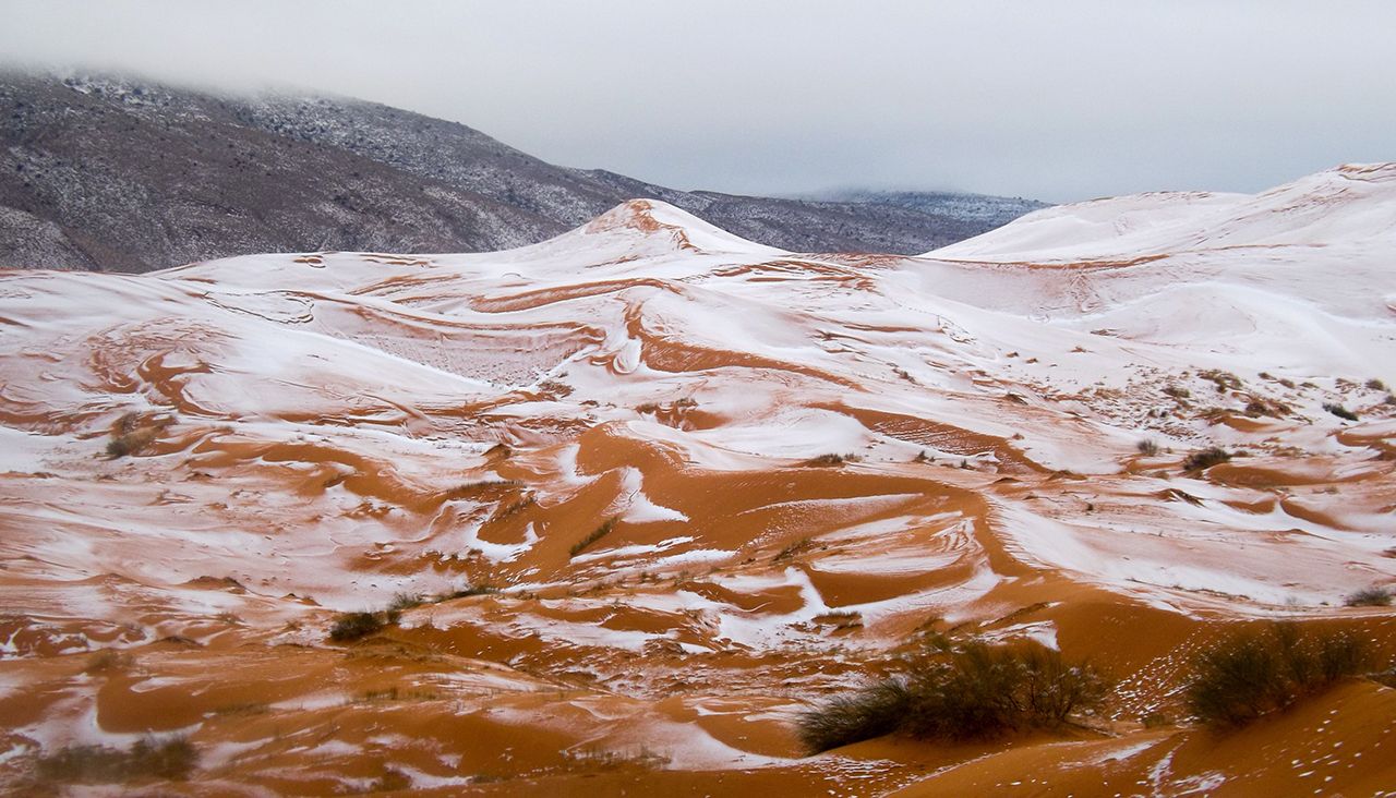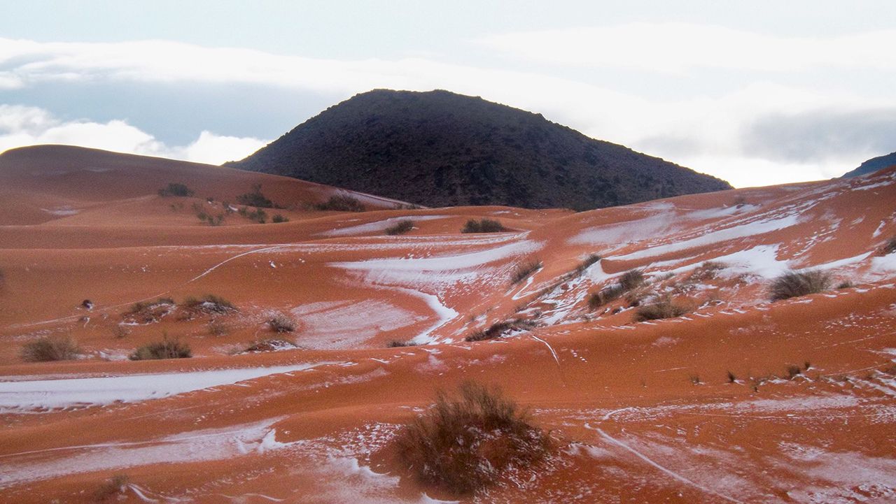 В пустыне Сахара впервые за 37 лет выпал снег. Фотограф Карим Бушетата из алжирского города Айн-Сефра успел сделать несколько снимков пустыни сразу после снегопада. По словам Бушетата, снег лежал на барханах около суток. Сейчас он растаял. «Медуза» показывает фотографии редкого и невероятно красивого явления.