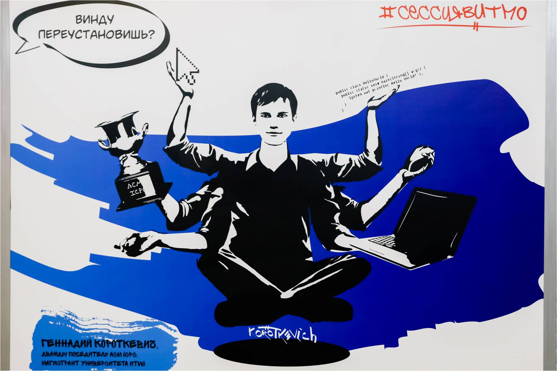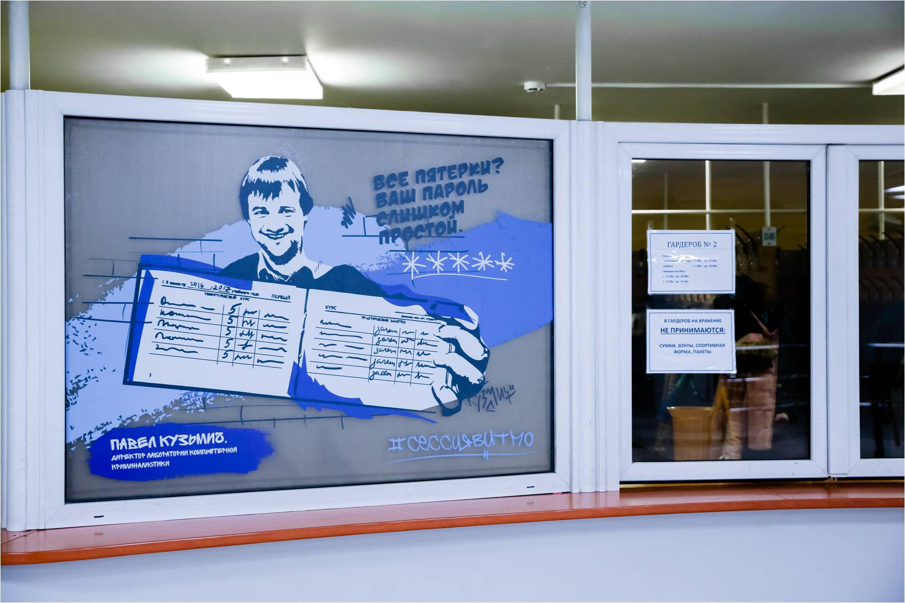 В честь зимней сессии в ИТМО появились граффити с портретами преподавателей и надписями в стиле творений Бэнкси, agon_noga и HoodGraff.