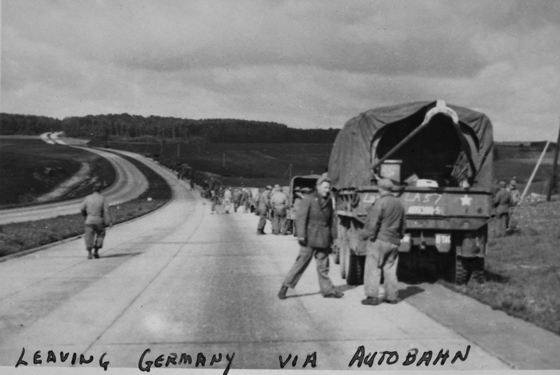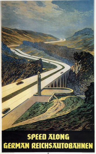 Американские военные на немецком автобане в 1945 Два творца впервые встретились на Берлинской автомобильной выставке 1933 года. В своих мемуарах Гудериан вспоминает, что для канцлера Германии было необычно лично открывать выставку. И то, что он имел сказать, резко контрастировало с обычными речами министров и канцлеров по таким случаям. Он объявил об отмене налога на автомобили и говорил о новых национальных дорогах, которые скоро будут построены, и о Volkswagen, дешевом «народном автомобиле», который должен был быть поставлен на массовое производство (1952:28).
