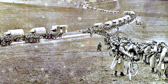 Немецкие военнопленные на автобане в 1945 И Фалькенхайн начинает действовать. Кронпринцу Вильгельму, стоящему во главе Пятой армии, отдан приказ атаковать 12 февраля 1916 года. Именно ему, страстному гонщику, выпадает запустить фалькенхайновскую «мясорубку». Но из-за собственных транспортных проблем немцы вынуждены отложить начало артиллерийского обстрела, что дает французам принципиальный временной задел — и возможность войти в историю мирового автодвижения. 19 февраля немецкие перебежчики сообщают новую дату планируемого нападения. Генерал Рагуно и майор Думанк, глава военной автомобильной службы, очевидно, понимают тяжесть ситуации. Она сводится к простой проблеме обеспечения надежного снабжения фронта. Как только немцы перережут железнодорожное сообщение, Верден будет зависеть от последней пуповины — route nationale (национальной дороги) на Бар-ле-Дюк. Сорок пять наполеоновских километров решают судьбу Франции. Но Дирекция автомобильных служб не считает это причиной для отчаяния. Еще до того, как германские войска открыли огонь в 7 утра 21 февраля, Думанк превратил старомодную Route nationale 109 в автобан. Бар-ле-Дюк становится штаб-квартирой Автомобильной регулировочной комиссии (CRA), которая выгоняет всех пешеходов, велосипедистов и запряженные лошадьми повозки на грязные сельские дороги и расчищает RN 109 исключительно для движения грузовиков. Двусмысленному дорожному движению Европы приходит конец.