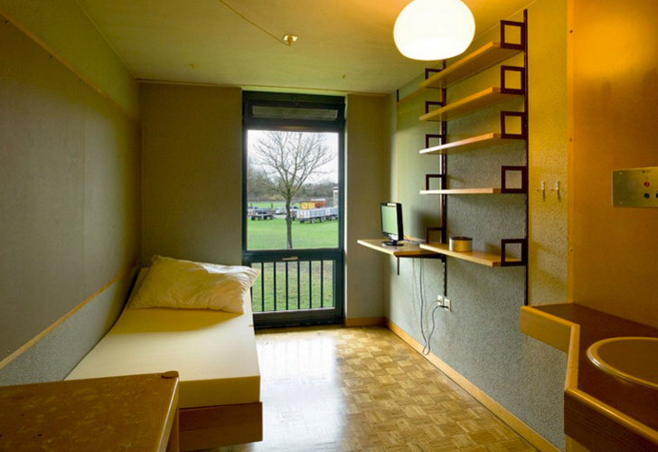 В любом случае, попав в Вицвил, заключенный в первую очередь оказывается в его центральной части, где проходит трехмесячный карантин. Это наиболее основательно охраняемый участок тюрьмы. Здесь, в небольших двухэтажных зданиях, заключенные проводят выходные и вечера, здесь они едят. Я захожу в одну из — нет, я не могу назвать это «тюремной камерой» — комнат. Она выглядит полноценным частным пространством, Кровать, туалет, книги, журналы, телевизор, компьютер. Да, Фейсбука нет и быть не может: на компьютере можно только играть, ну и писать. Следят ли сотрудники тюрьмы за кругом чтения своих подопечных? Да, и осужденный за педофилию вряд ли сможет купить каталог детского белья.