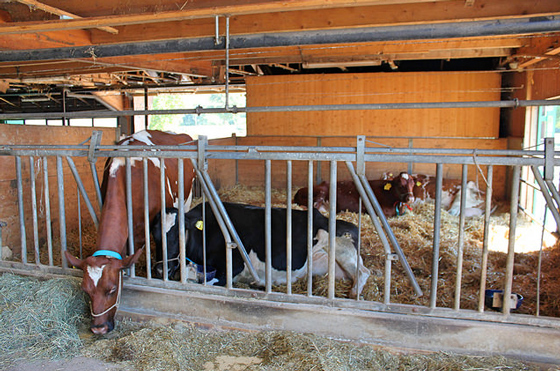 Мы отходим покурить в тень. Сегодня жарко. Возле амбаров пахнет сеном. Вдалеке видны снежные вершины Альп.