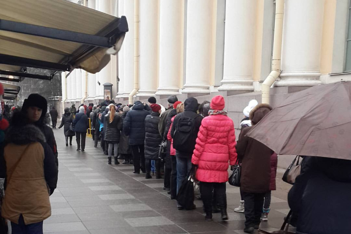 Больше ста петербуржцев выстроились в очередь на открывающуюся выставку картин Айвазовского.