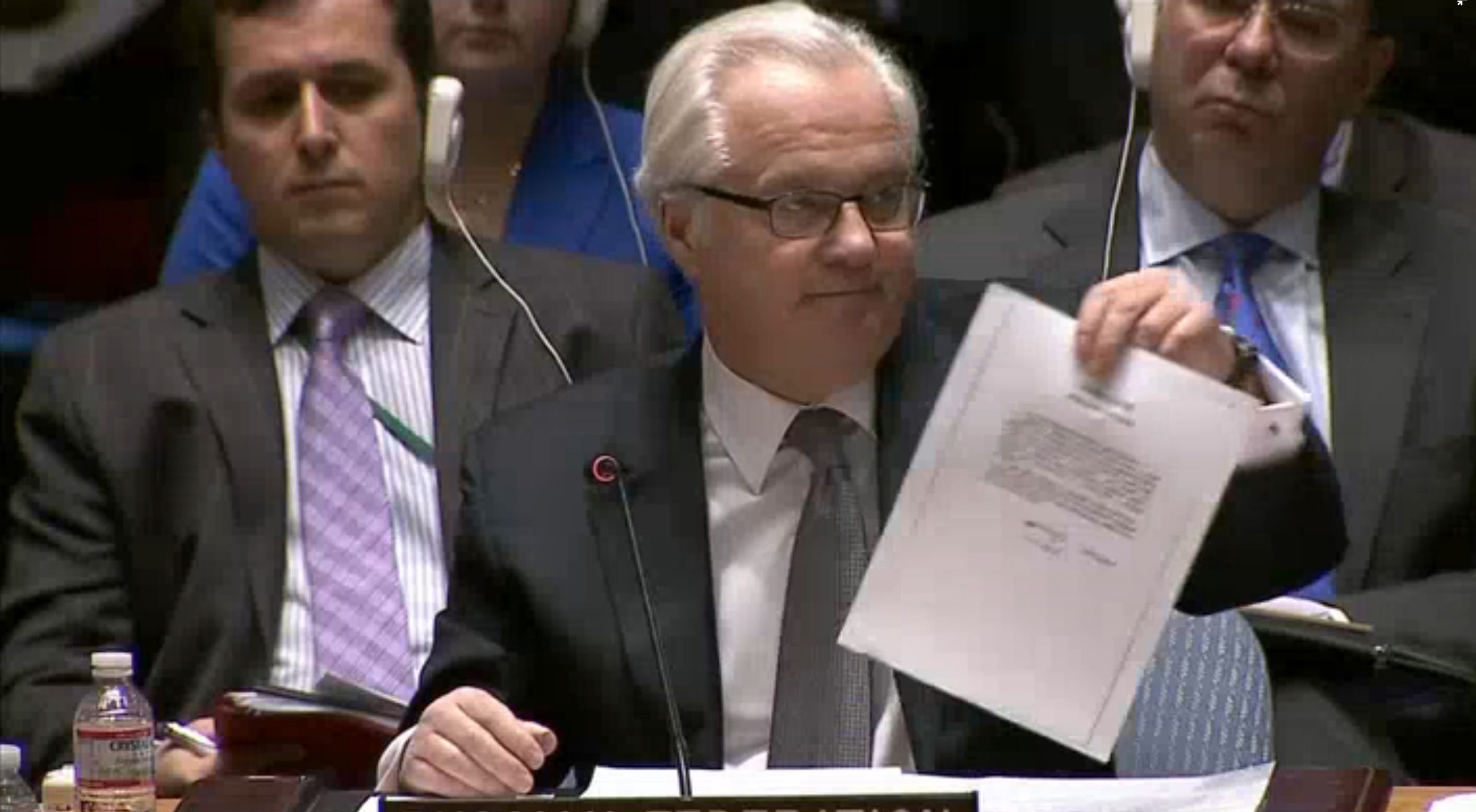 В тот же день постоянный представитель России в ООН Виталий Чуркин сообщил о факте такого обращения на заседании Совета Безопасности, а на заседании 3 марта продемонстрировал фотокопию документа.