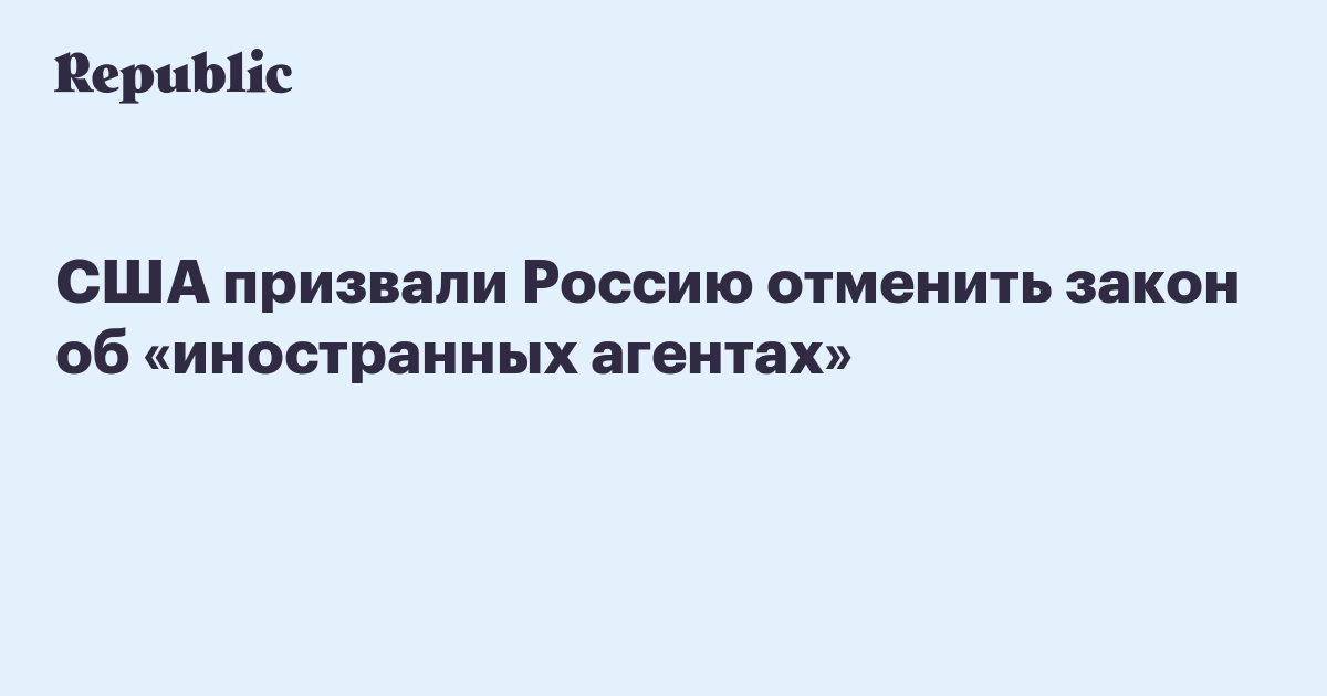 Государственный департамент США призвал Россию отменить закон об «иностранных агентах». Соответствующее заявление опубликовано на сайте ведомства.