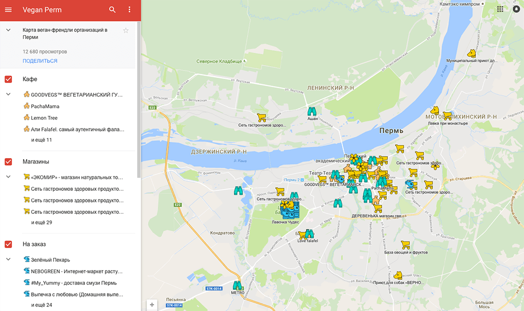 Проект VeganBird. Активист Тимофей Дубровских создал Карту веган-дружелюбных организаций в Перми, Рязани, Тбилиси и Минске. Карта создана на основе Google Maps и постоянно пополняется новыми организациями.