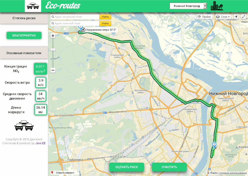 Сервис разработал Дмитрий Степанов, магистрант кафедры прикладной информатики и статистики Международного института экономики, права и менеджмента Нижегородского государственного архитектурно-строительного университета (ННГАСУ). Подробнее о проекте и алгоритме вычисления загрязнений.