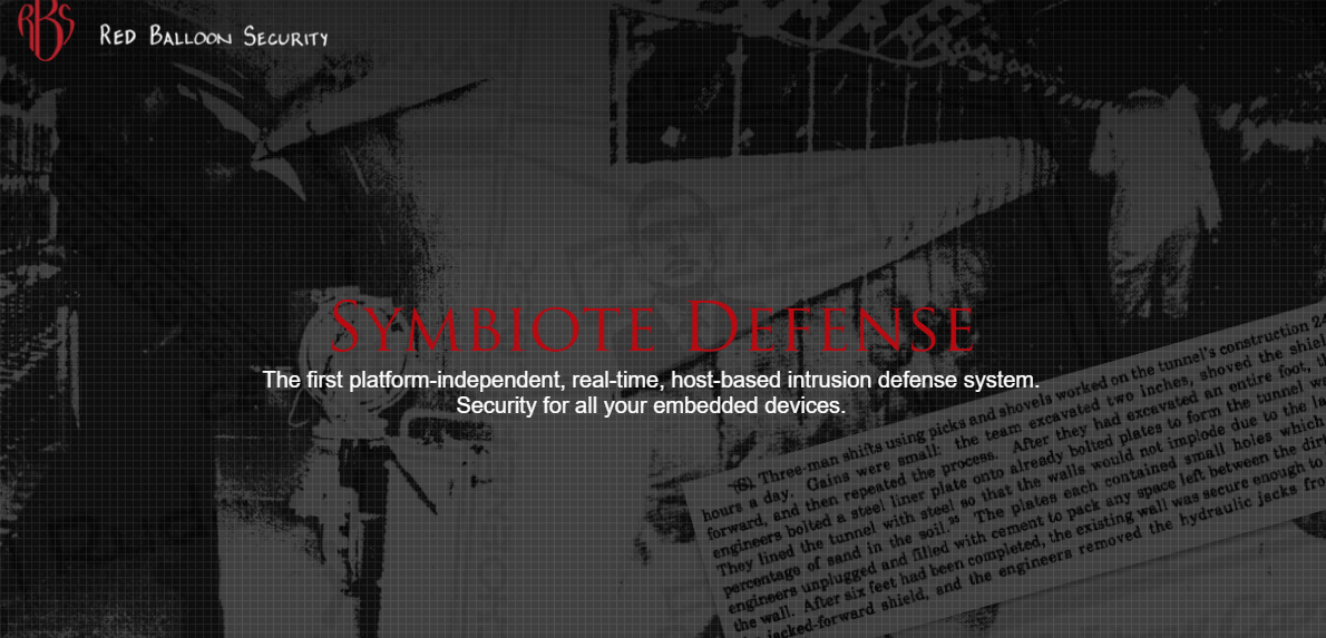Программное обеспечение Symbiote Defense способно защитить различные устройства, от принтера до автомобиля, независимо от их операционной системы. Программа может обнаружить вредоносную активность и устранить угрозы. Разработано при поддержке Управления перспективных исследовательских проектов Министерства обороны США (DARPA). Подробнее узнать об антивирусе можно на сайте Red Balloon Symbiote.