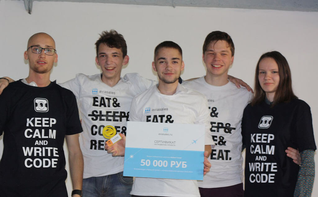 Победители хакатона, команда «Questory», получила 50 000 рублей на доработку проекта от компании Aviasales.