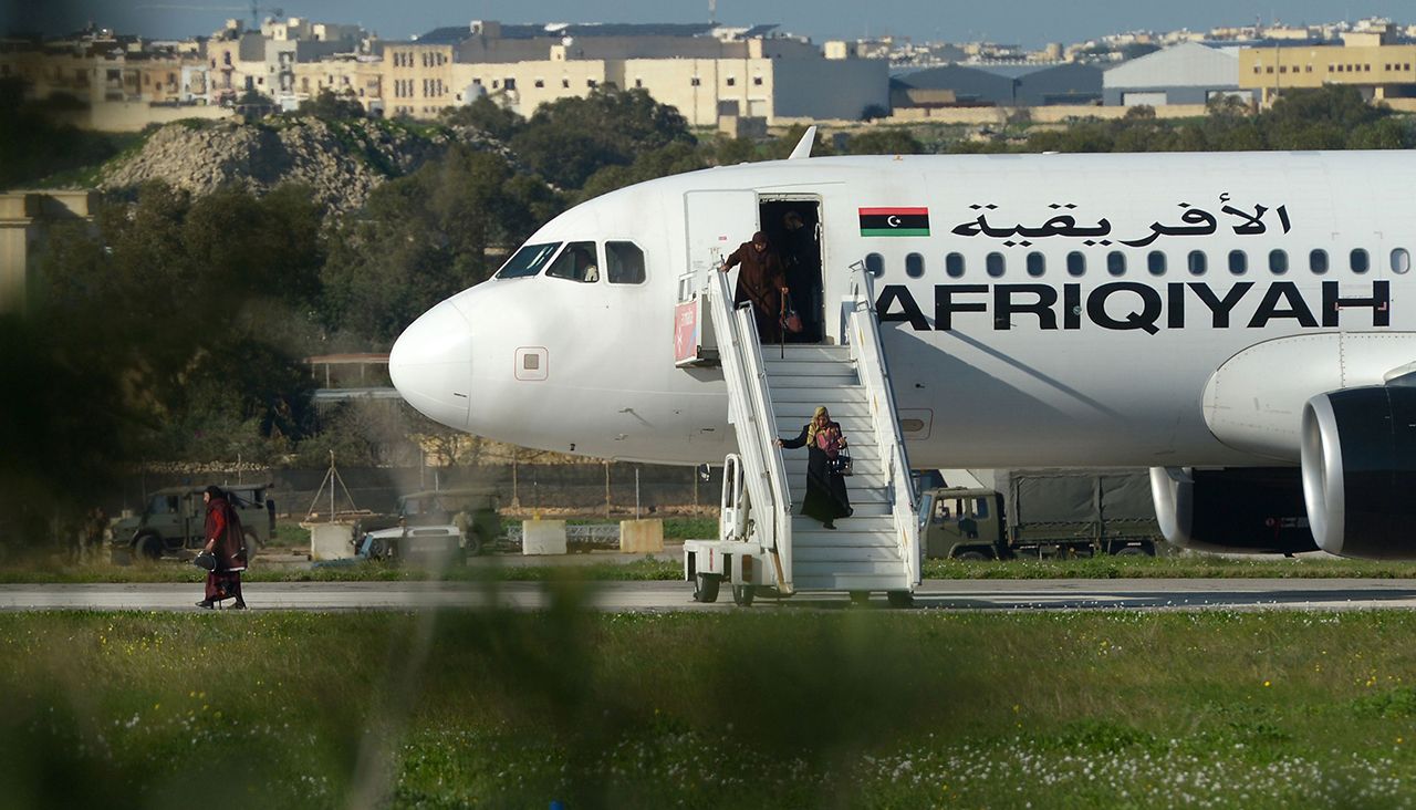 В какой момент произошел захват самолета, неизвестно. Угонщики посадили его в аэропорту Мальты, в 350 километрах севернее Триполи (Мальта находится в Средиземном море между Ливией и Италией; близко к Сицилии). Reuters сообщало, что самолет пытался приземлиться в Ливии, но захватчики не дали этого сделать. Пилот самолета Али Милад заявил, что изначально угонщики хотели приземлиться в Риме.