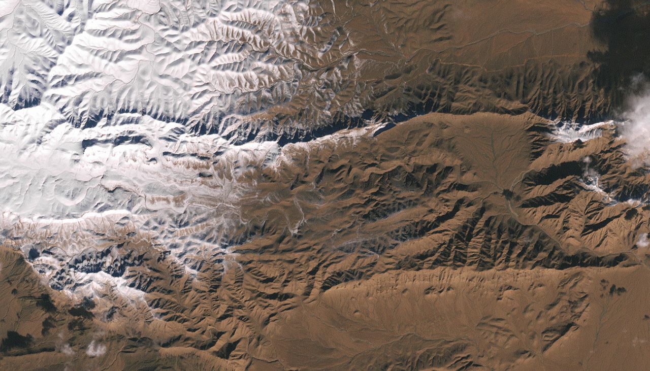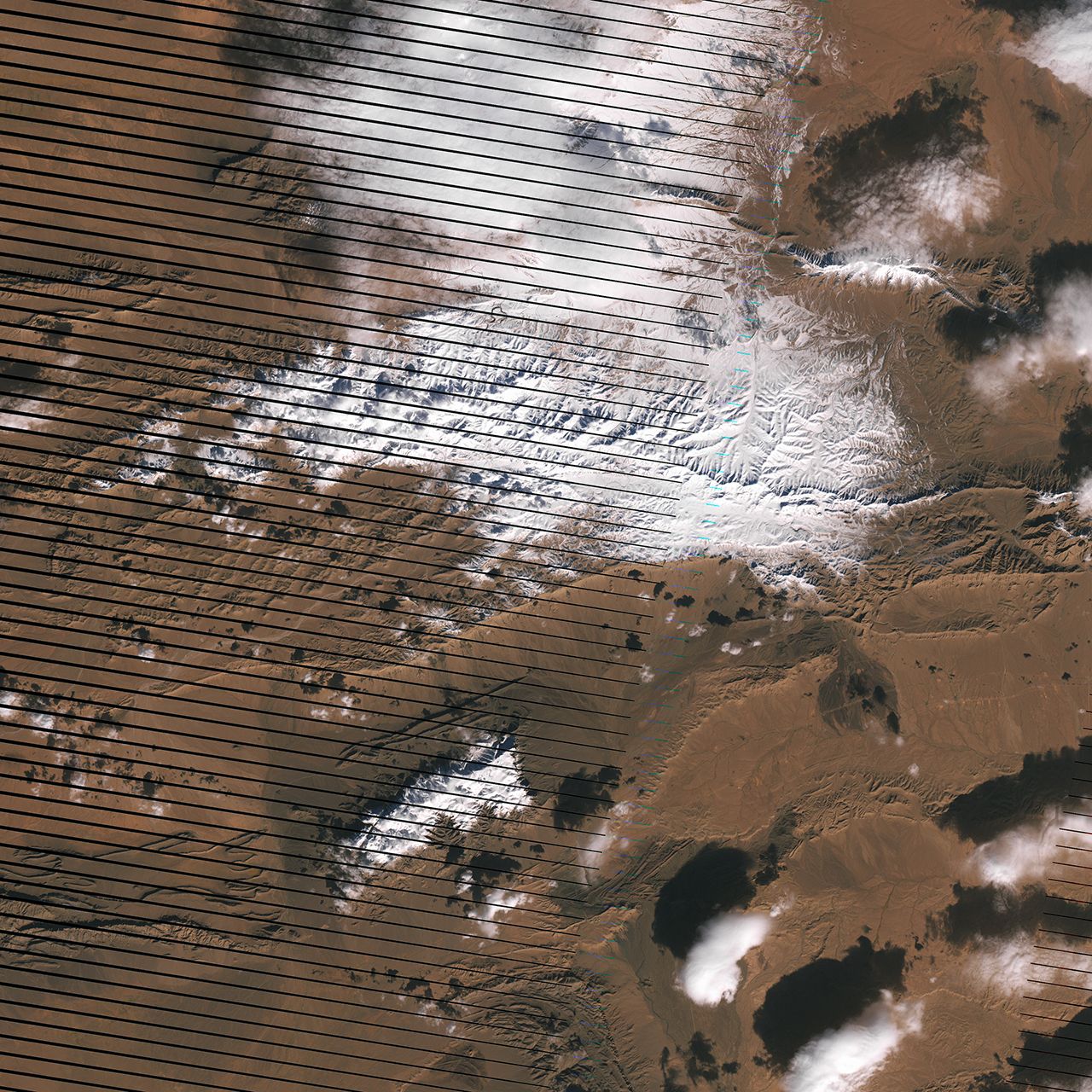 В Сахаре 19 декабря выпал снег — впервые за 37 лет. Он растаял на следующий день, но заснеженную пустыню успел запечатлеть спутник Landsat 7. На снимке ниже — участок Сахары в районе границы Марокко и Алжира, к югу от города Буарфа.