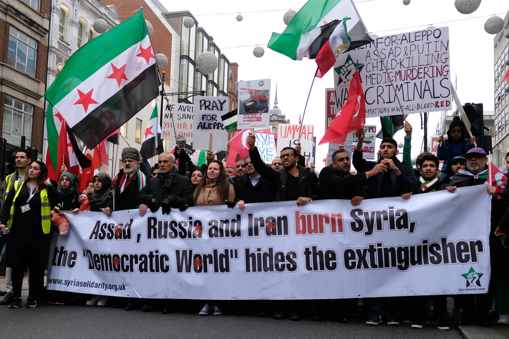 Шествие против действий России, Ирана и режима Асада в Сирии. Лондон, 17 декабря 2016Alisdare HicksonВ ноябре издание Foreign Policy опубликовала материал под названием «Владимир Аравийский» и с подзаголовком «Это не только Сирия: Россия постепенно наращивает влияние по всему Ближнему Востоку и бросает вызов статусу Америки как сверхдержавы». Одним из главных геополитических тенденций 2016 г. автор считает «возвращение России на Ближний Восток».