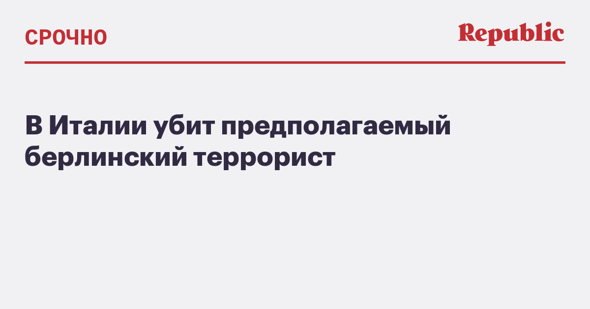 Информацию о причастности погибшего к атаке на берлинскую ярмарку подтверждает итальянский телеканал Rai.