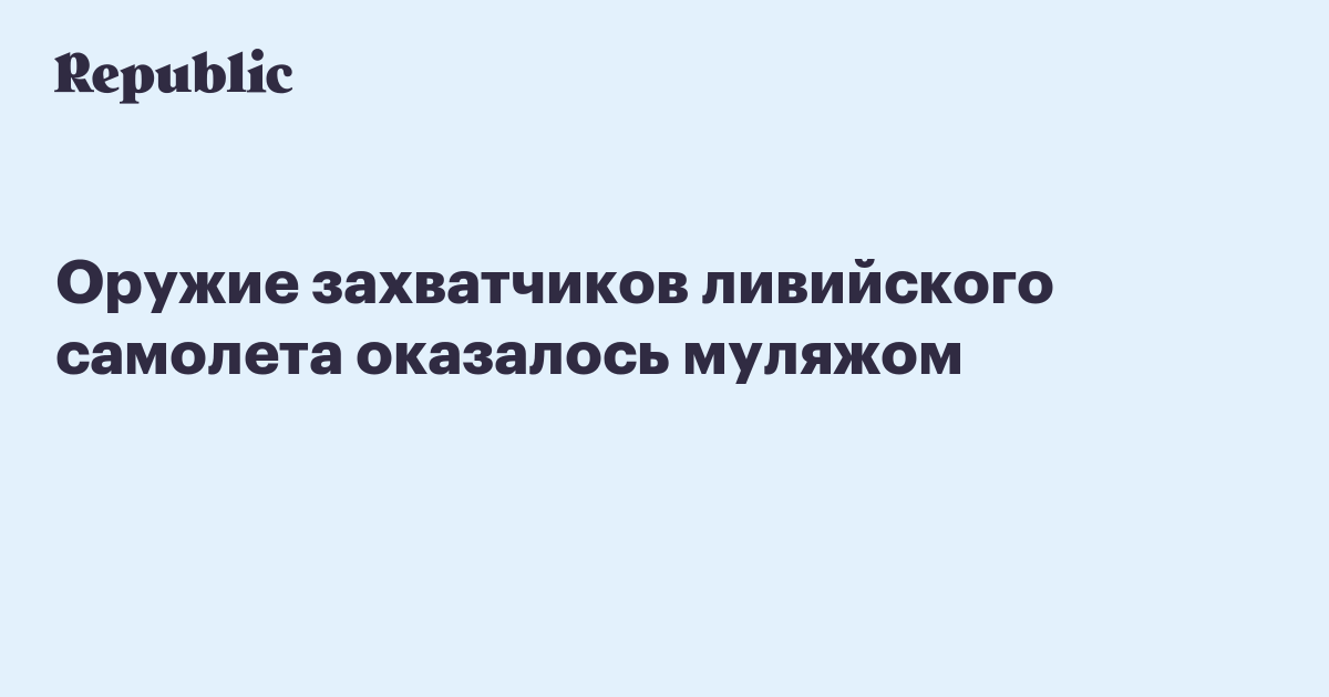 Угонщики самолета ливийской авиакомпании Afriqiyah Airways использовали поддельное оружие. Об этом в твиттере написал премьер-министр Мальты Джозеф Мускат.
